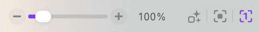 Zoom in and out of the image using the zoom slider. Or click the - or + buttons on either side of the slider to zoom in discrete steps. Next to the slider you see the current zoom level.