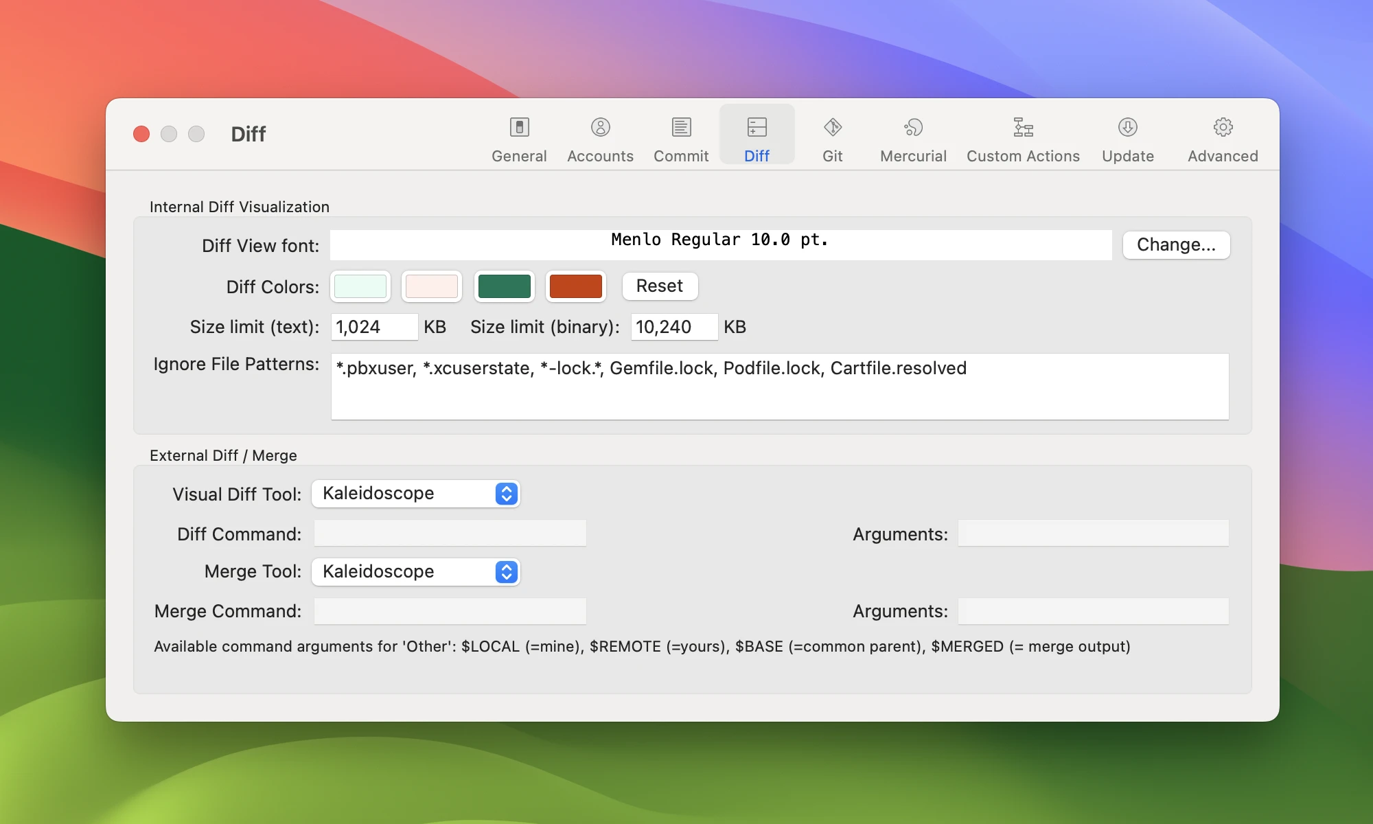 And that's it, you're all set to start using Kaleidoscope together with Sourcetree.